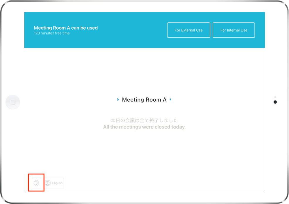 Only one iPad can be installed per meeting room. Outside Mode and Inside Mode cannot be used together for a single meeting room. If the meeting rooms are separate, for example, Outside Mode can be used for the meeting room in the visitor's area and Inside Mode for the meeting room in the internal area.