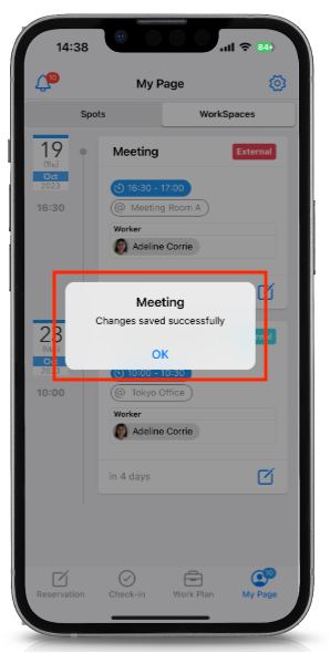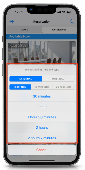 You can reserve, edit, and delete workspace reservations on Acall Mobile only if you have selected "Reservation on Acall" as your meeting room reservation method.