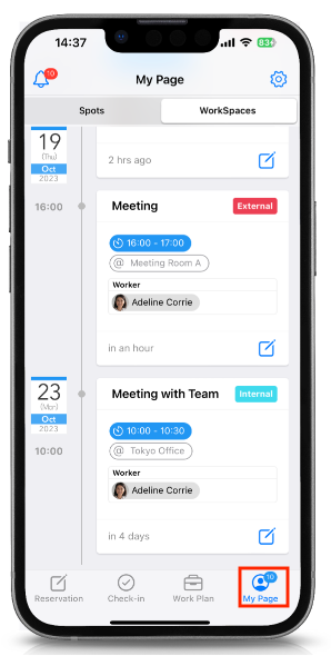 If you are using Spot Check-in feature, [Spot] and [Workspace] will be displayed. Tap [Workspace] in this case.