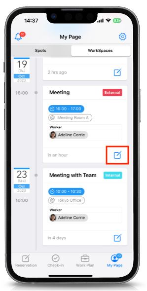 ・You can also view and edit reservation information on [Workspace] tab in [Reservation] menu.
