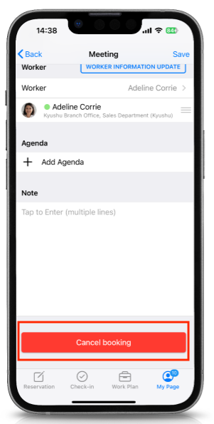 Scroll down on the reservation screen and tap [Cancel booking] to complete the deletion.