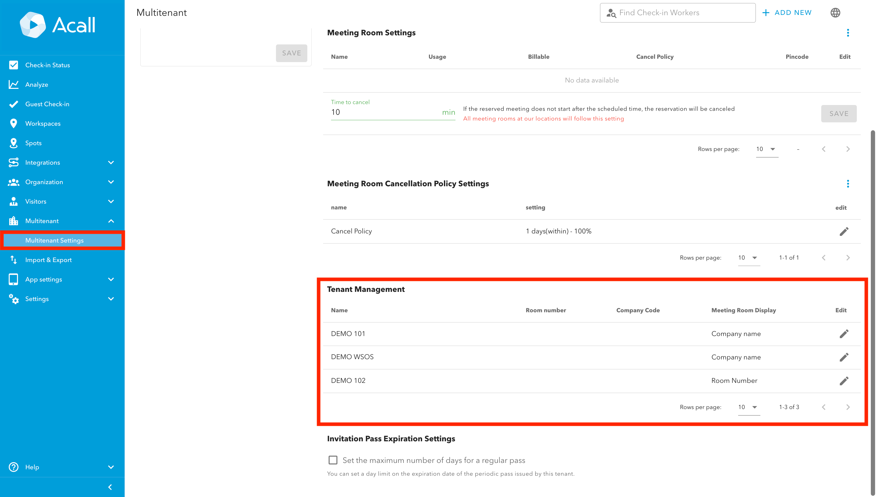 This page explains the tenant management in Acall multitenant settings.