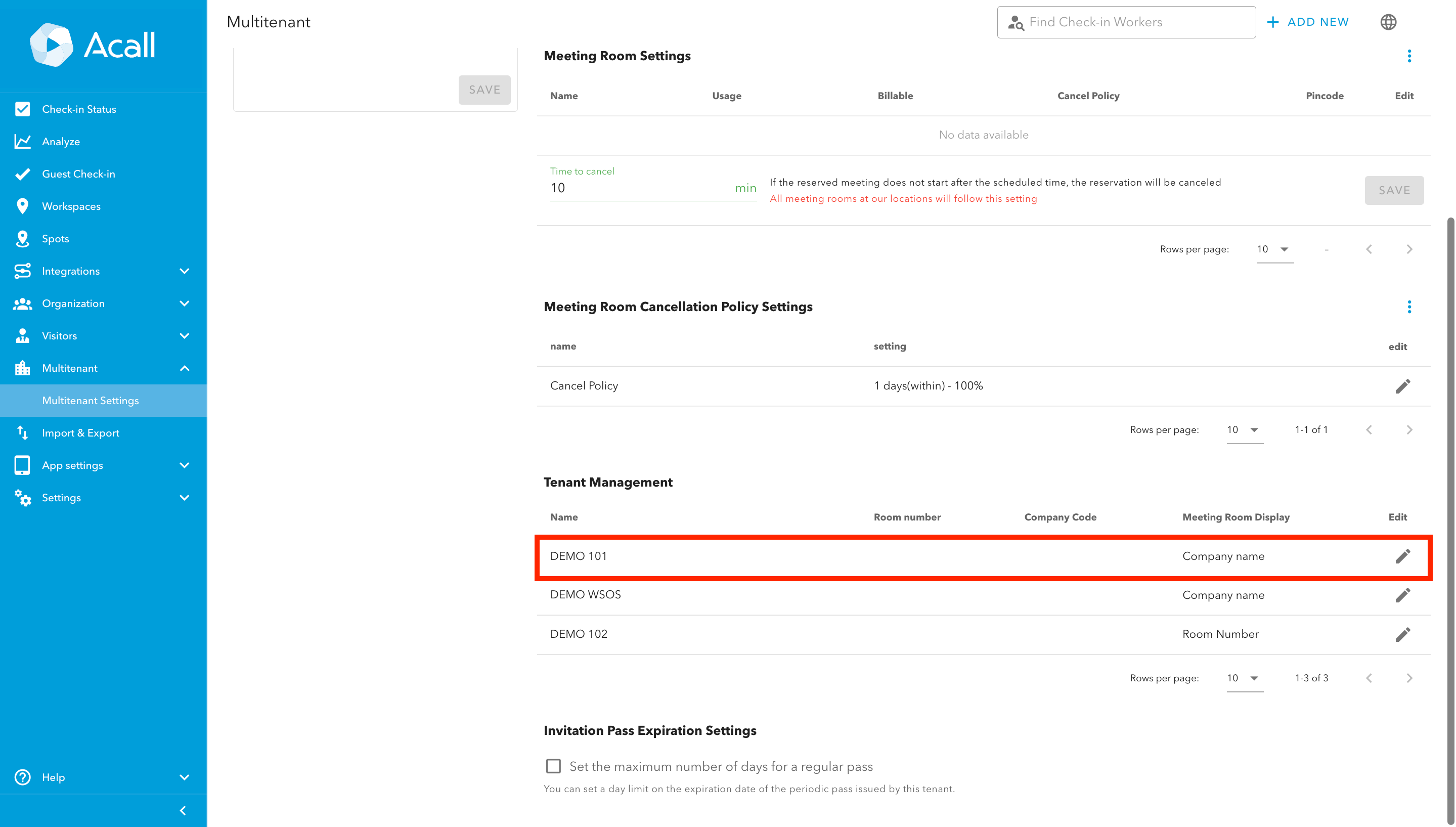 You can set company name that is displayed on the Acall for each tenant company.