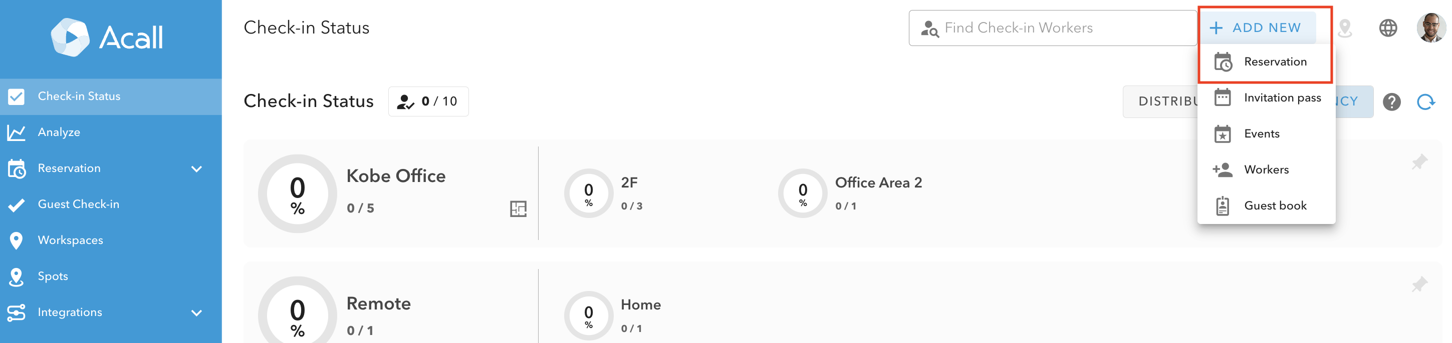 Open "Reservation" > "Workspace" from the side menu of Acall Portal.