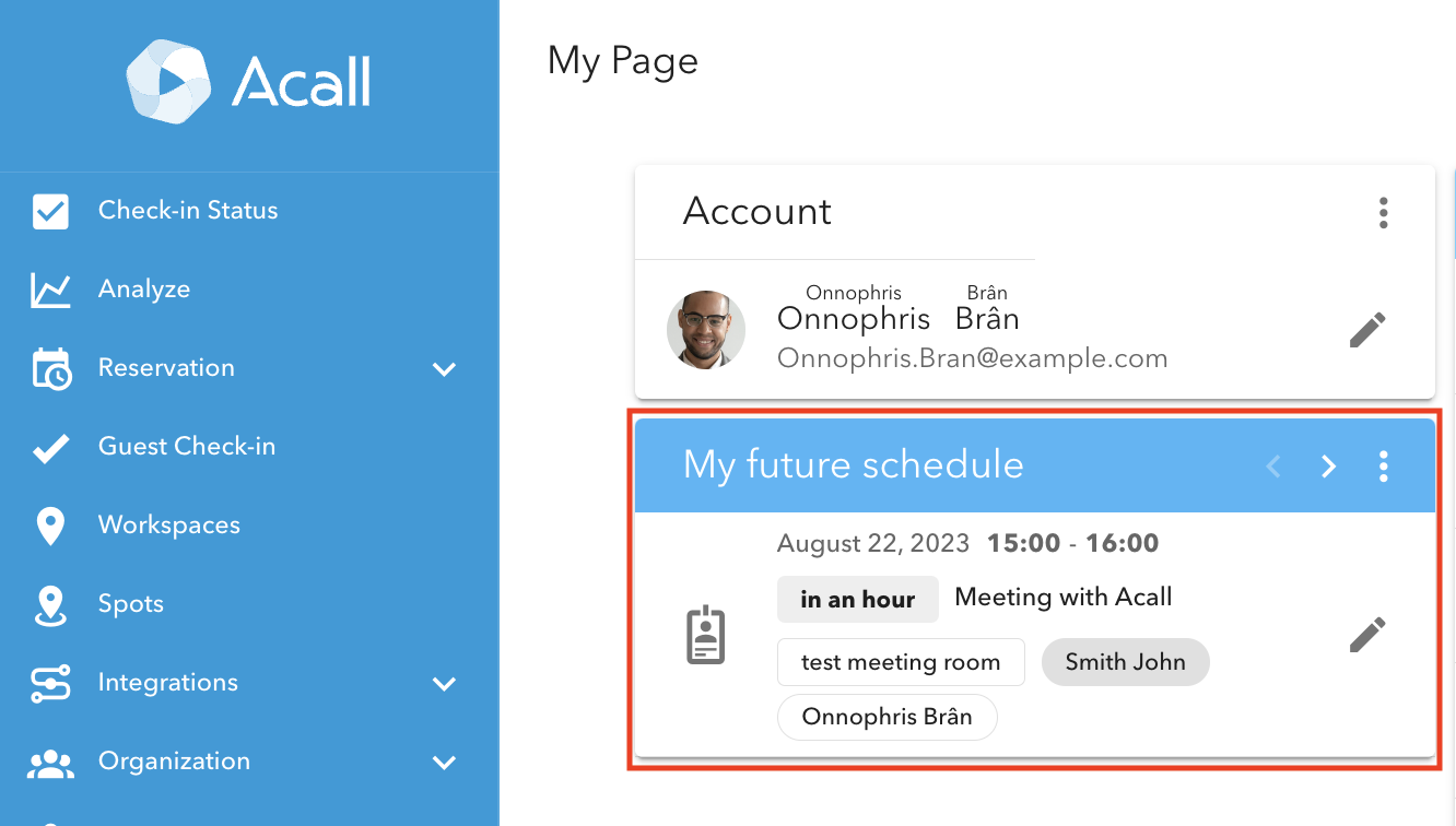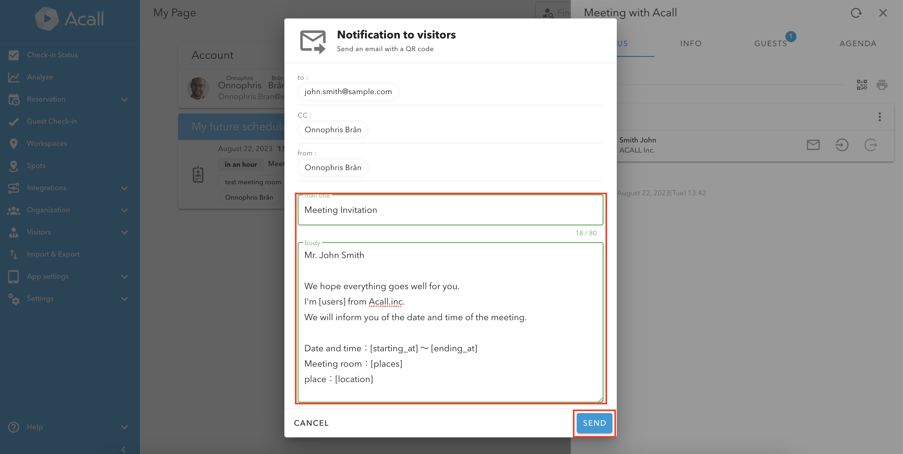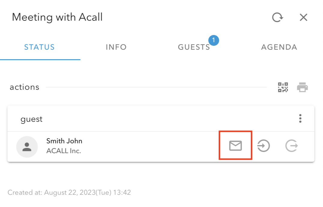 When a guest checks in with the QR code (appointment code) on Acall Reception, Acall will send a notification email to the person in charge.