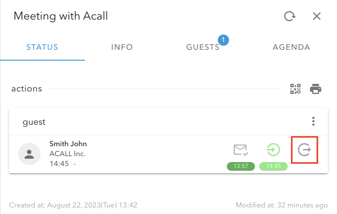 After the guest leaves the building, manage the exit on Acall Portal.